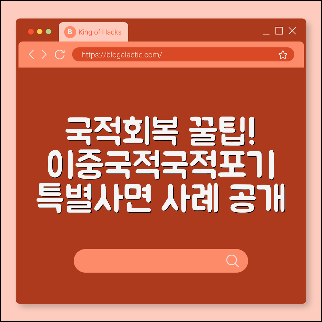 | 국적포기 후 이중국적 | 외국 국적 취득 후 한국 국적포기, 이후 국적회복 신청 | 법적으로는 국적포기 상태, 회복 시 절차 엄격 | 국적회복 시 신속한 서류 준비와 정확한 증빙 요구 |