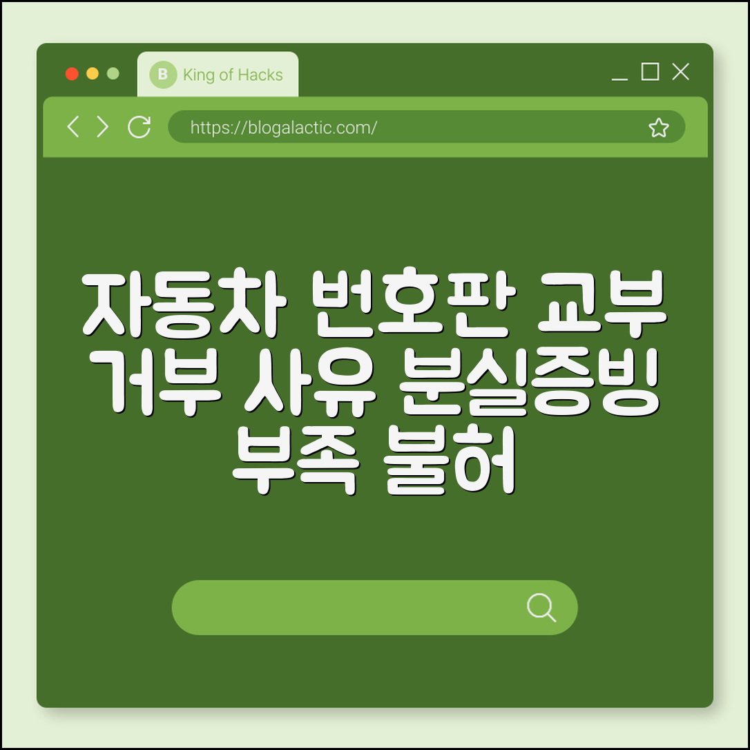 자동차 번호판 교부 거부는 분실 사유, 증빙서류 부족, 불허 사유 등으로 발생하며, 신청자의 정확한 사유 진술과 충분한 증빙 제출이 중요합니다. 정확한 증빙 없이는 절차가 지연되거나 거부될 수 있어 주의가 필요합니다.