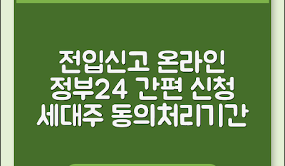 혹시 세대주동의 관련 절차가 복잡할까 걱정되시나요? 정부24는 쉽고 명확한 안내를 통해 누구나 빠르게 전입신고를 마칠 수 있도록 지원합니다. 편리한 온라인 신청으로 시간과 노력을 절약하세요!