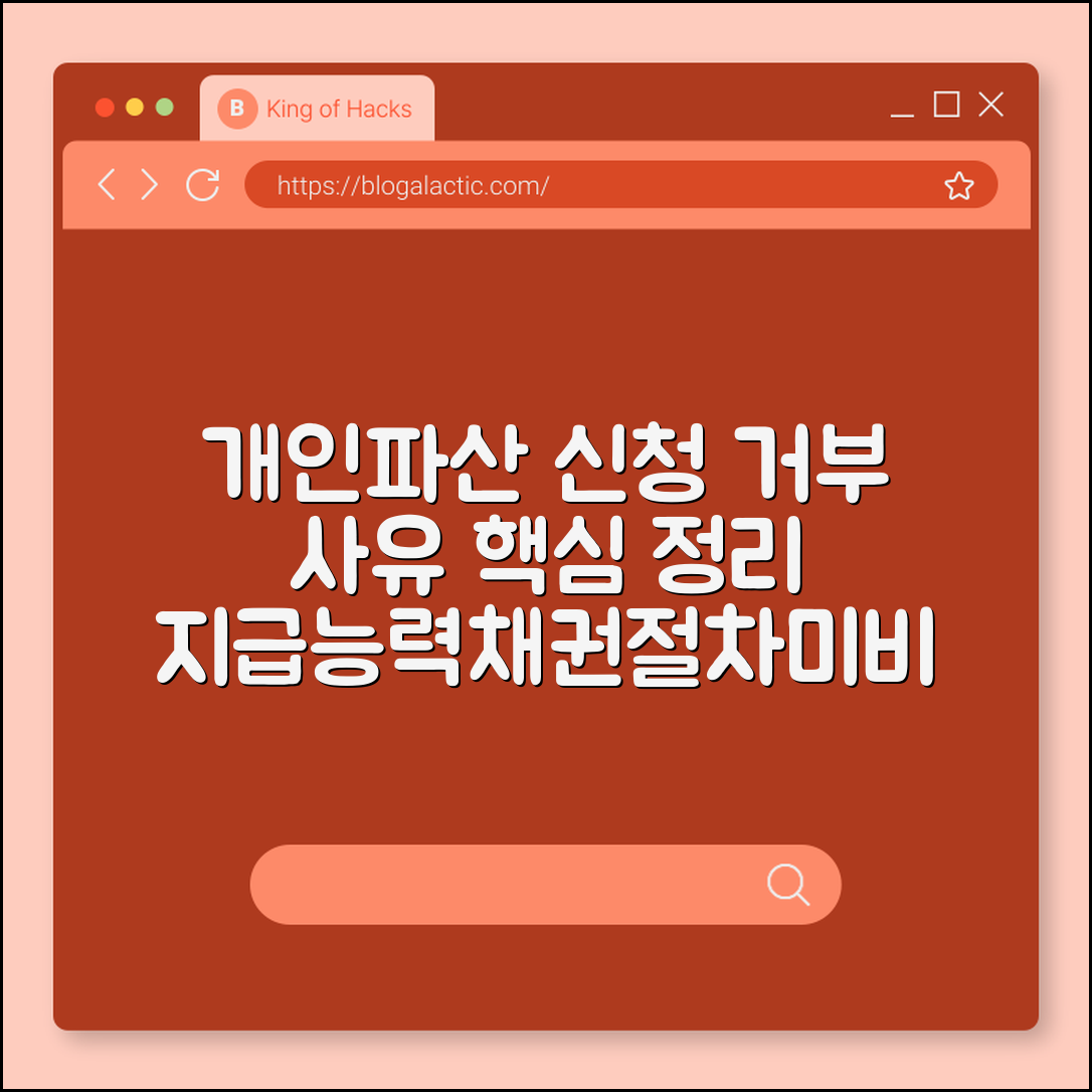개인파산 신청 거부 사유는 지급능력, 채권 정리, 절차미비 등이 주를 이룹니다. 특히 지급능력이 전혀 없지 않거나 채권자가 신청서류의 불완전함을 지적하면 거부될 수 있어 꼼꼼한 준비가 필요합니다.