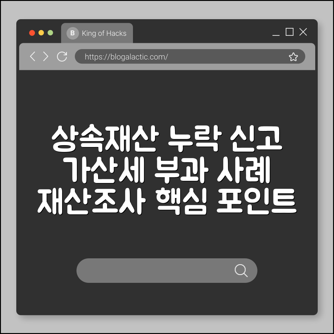상속재산 신고할 때 빠뜨리면 큰일 난다는 얘기, 한 번쯤 들어보셨나요? 실제로 누락된 상속재산이 발견되면 가산세가 부과되어 예상치 못한 부담을 질 수 있는데요. 많은 분들이 이런 재산조사와 관련된 문제로 당황하는 경우가 많습니다. 이 글에서는 상속재산 누락신고로 가산세가 어떻게 부과되는지, 그리고 이를 예방할 수 있는 실질적인 방법까지 친절하게 안내해드릴게요.